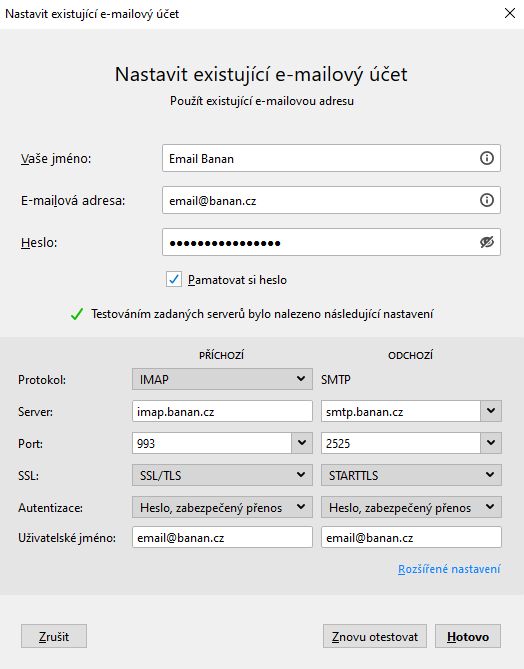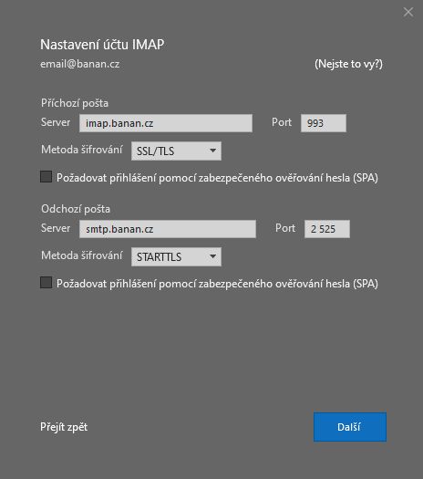 Adresa: smtp.banan.cz