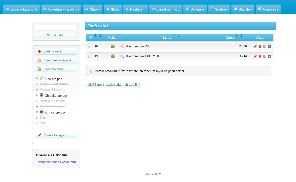 pro efektivnější práci se zbožím můžete výrobky vyhledávat, nechat si vypsat zboží dle toho, zda jsou v akci, zda nepatří do žádné kategorie nebo si jednoduše necháte vypsat všechno nabízené zboží.