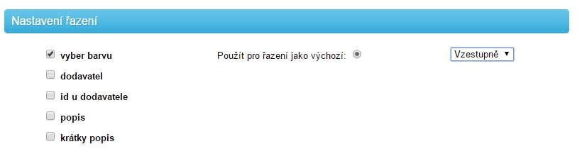 Vyberete podle, kterého parametru se má zboží řadit "Použít pro řazení jako výchozí" a dále zvolíte jestli se má řadit vzestupně či sestupně.