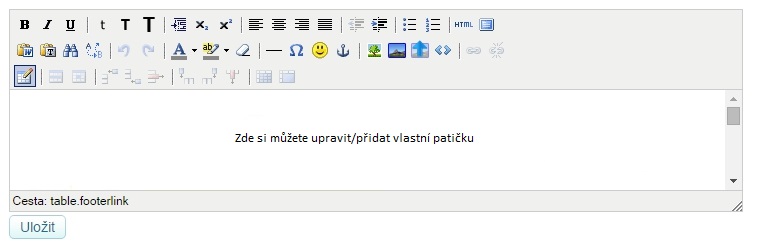 Zde upravujete patičku eshopu nebo-li to co se na zobrazuje úplně dole.