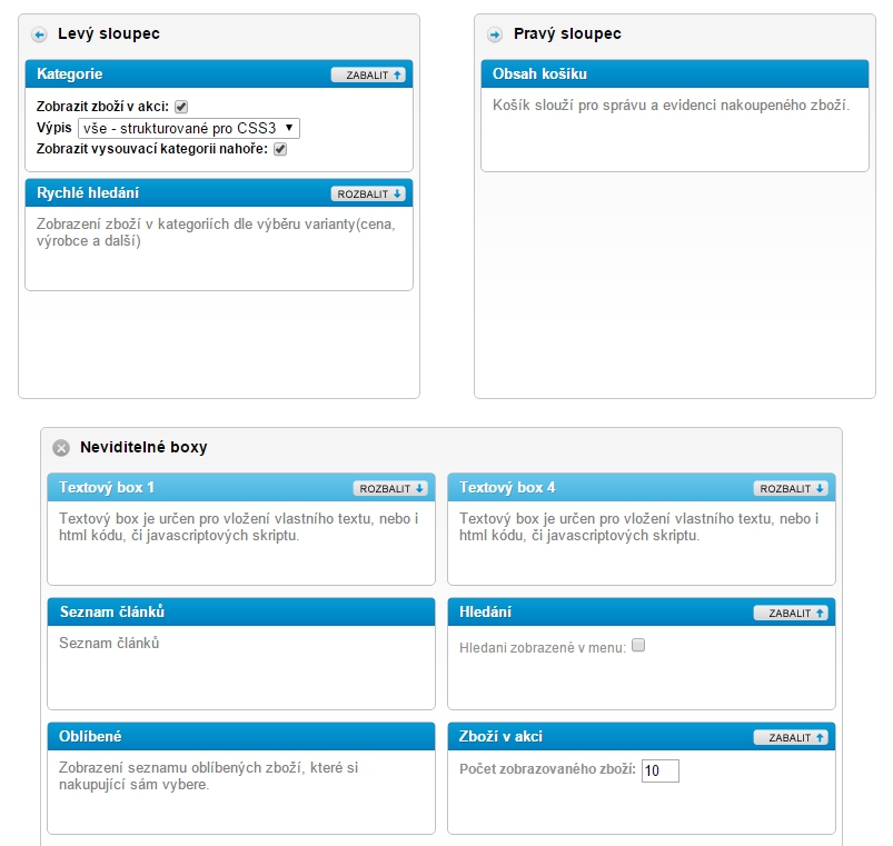 Zde lze upravovat a přesouvat jednotlivé položky sloupců.