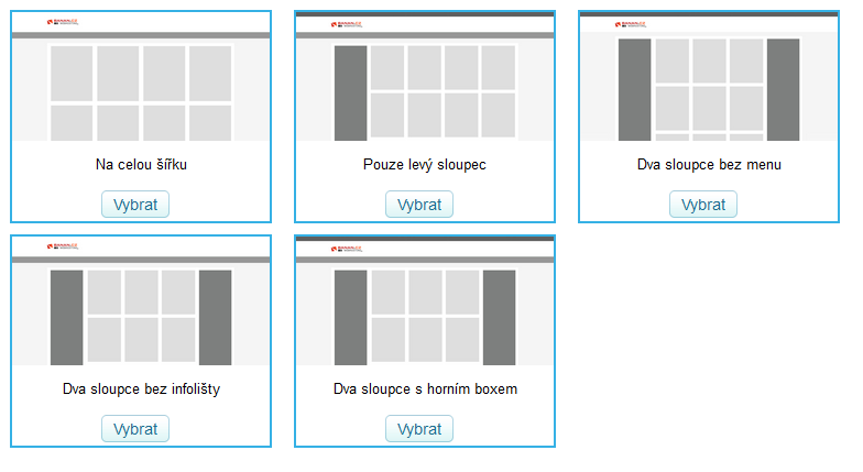 Změna šablony změní strukturu a jiné nastavení vzhledu eshopu. Veškeré změny které šablony provádí jdou provést přes ostatní nastavení vzhledu. Šablony slouží jako rychlý nástroj pro zmenu často používaných vzhledů.