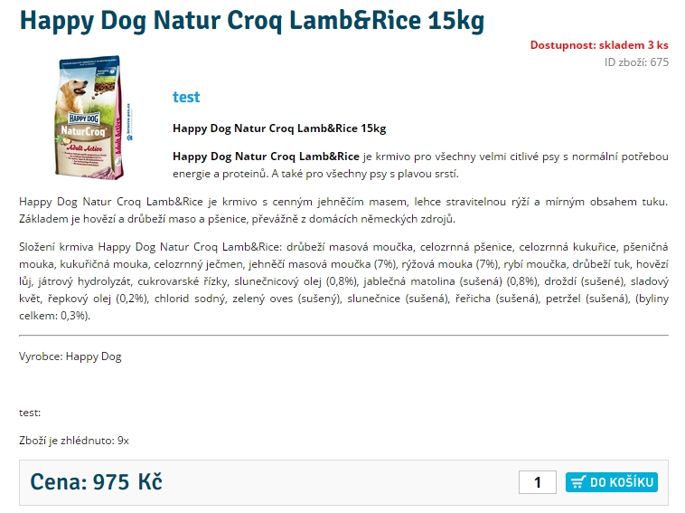 Po nastavení může výpis detailu zboží vypadat například jako na obrázku níže.