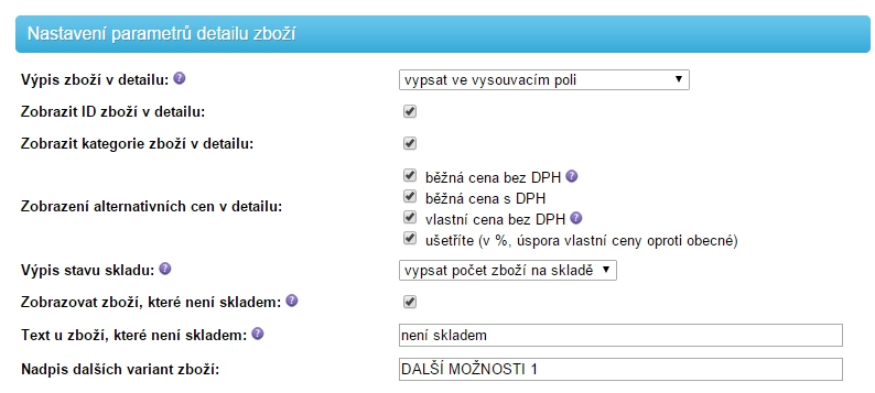 Nastavení parametrů detailu zboží