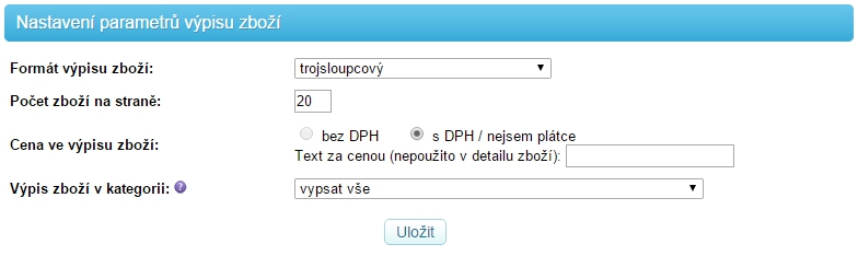 Zde nastavujete jak se bude vypisovat zboží ve Vašem e-shopu.