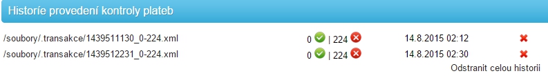 Historie provedení kontroly plateb - zde naleznete záznamy dříve provedených kontrol plateb.