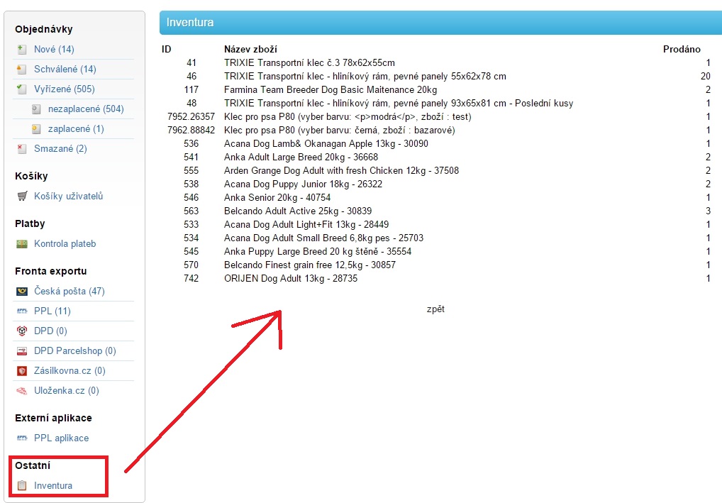 Zde můžete provést export pro PPL aplikaci. Skryté objednávky nelze vyeprtovat.
