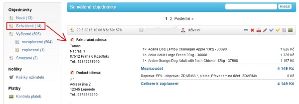 Zde máte kontrolu nad novými objednávkami, můžete je schvalovat, upravovat a nebo mazat pomocí tlačítek, která jsou popsána výše.