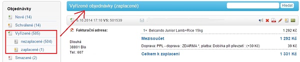 - Objednávku je možno označitk vyřízení, pouze pokud máte na skladě odpovídající počet kusů zboží, pokud sklad používáte.