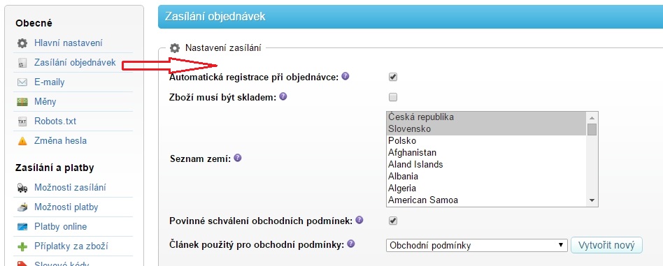 Nastavení objednávek provedete v sekxi Nastavení -> Obecné