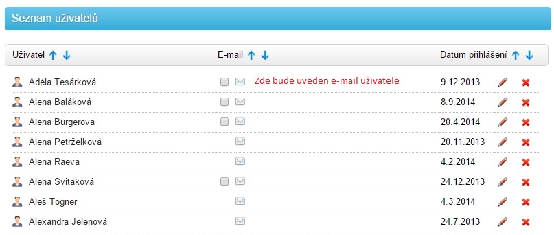Editovat či mazat uživatele je možno pomocí těchto tlačítek:
