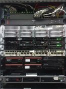 Níže uvedená fotografie nabízí pohled na několik serverů a switchů.
